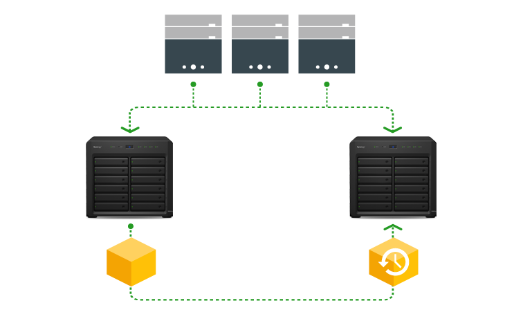 對(duì)于所有企業(yè)而言,提供不中斷的服務(wù)是非常重要的目標(biāo)。DS3615xs 提供 Synology High Availability (SHA) 技術(shù),其連接了主動(dòng)與被動(dòng)服務(wù)器,前者的所有數(shù)據(jù)皆鏡射至后者,當(dāng)主動(dòng)服務(wù)器出現(xiàn)錯(cuò)誤時(shí),被動(dòng)服務(wù)器馬上取而代之。共享文件夾同步可將數(shù)據(jù)實(shí)時(shí)復(fù)制至另一臺(tái)遠(yuǎn)程的 Synology NAS,在復(fù)原時(shí)間目標(biāo) (Recovery Time Objective, RTO) 內(nèi)回復(fù)企業(yè)因服務(wù)器故障而中斷的服務(wù)。此外,通過(guò)多網(wǎng)絡(luò)端口鏈接,DS3615xs 在單一網(wǎng)絡(luò)功能異常時(shí),也能提供備援機(jī)制。